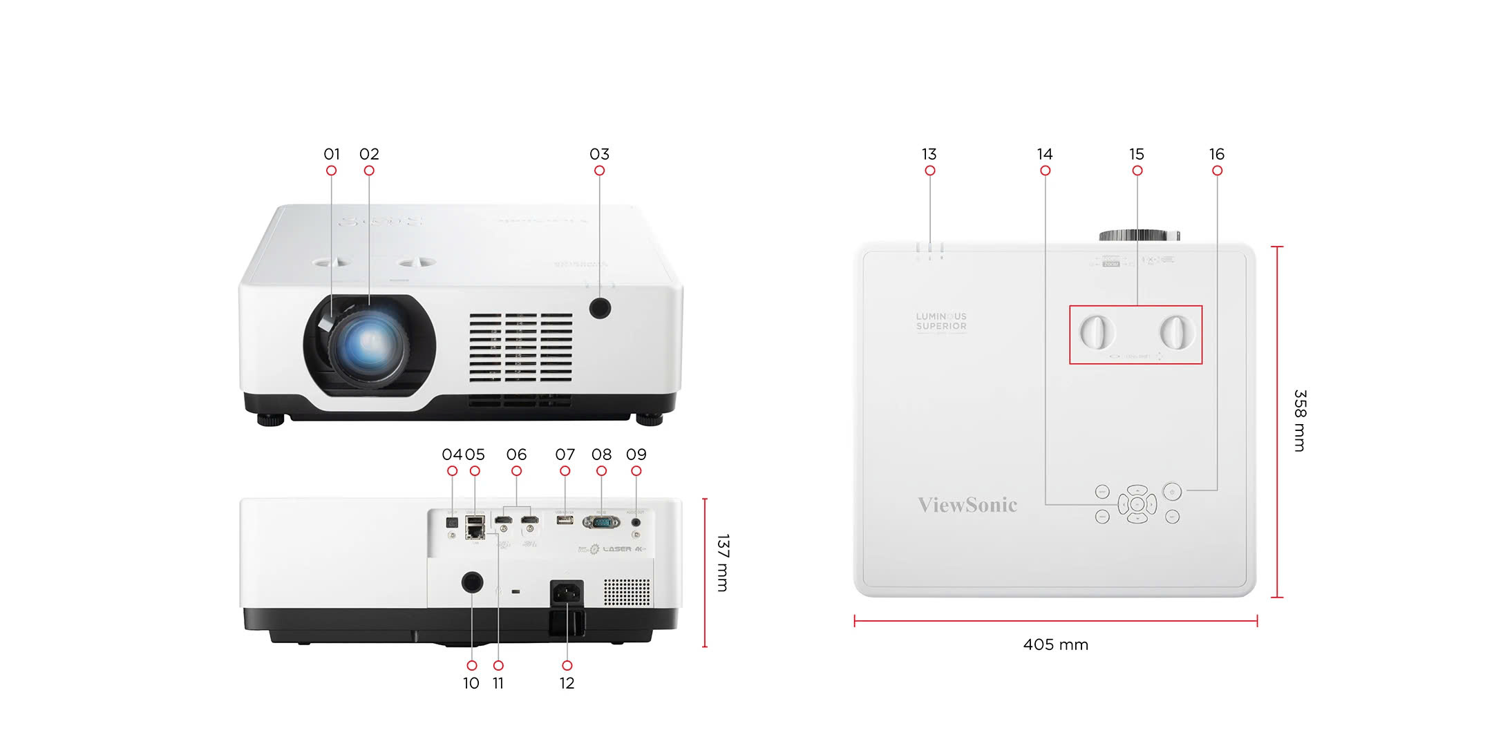 ViewSonic luôn cam kết mang đến cho khách hàng những trải nghiệm hiển thị tuyệt vời. Với mục tiêu tạo ra hình ảnh sắc nét, sống động và chính xác mà tái tạo màu sắc chân thực, ViewSonic không ngừng nâng cao công nghệ hiển thị và tối ưu hóa trải nghiệm người dùng. Đồng thời, ViewSonic cũng chú trọng đến sự bền bỉ và đáng tin cậy của sản phẩm. Từ thiết kế chất lượng đến quá trình sản xuất và kiểm tra chất lượng, ViewSonic đảm bảo rằng mỗi sản phẩm đều đạt tiêu chuẩn cao nhất và đáp ứng được yêu cầu của người dùng kỳ vọng vào sự ổn định và hiệu suất. Với tầm nhìn tiên phong và cam kết không ngừng đổi mới, ViewSonic đã trở thành một trong những nhà lãnh đạo hàng đầu trong lĩnh vực hiển thị. Với sự tận tâm với khách hàng và chất lượng sản phẩm, ViewSonic mang đến cho người dùng những giải pháp hiển thị tuyệt vời và đáng tin cậy cho mọi nhu cầu.| THÔNG SỐ KỸ THUẬT MÁY CHIẾU LSC601-4K | |