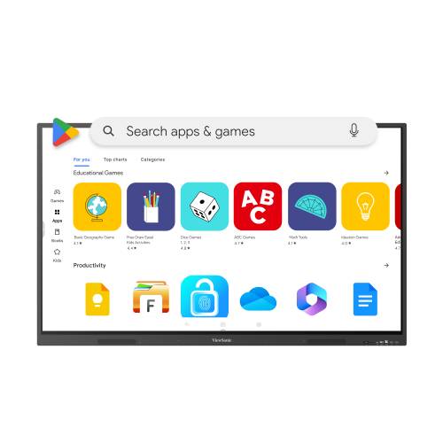 Với chứng nhận Android™ 16 EDLA và quyền truy cập trực tiếp vào Cửa hàng Google Play, dòng IN8605-C cho phép bạn sử dụng nhanh chóng các ứng dụng thiết yếu như Chrome, YouTube và Google Search. Cùng với các tiện ích và công cụ giáo dục có sẵn, mọi thao tác cộng tác đều trở nên mượt mà và trực quan ngay trong tầm tay.
